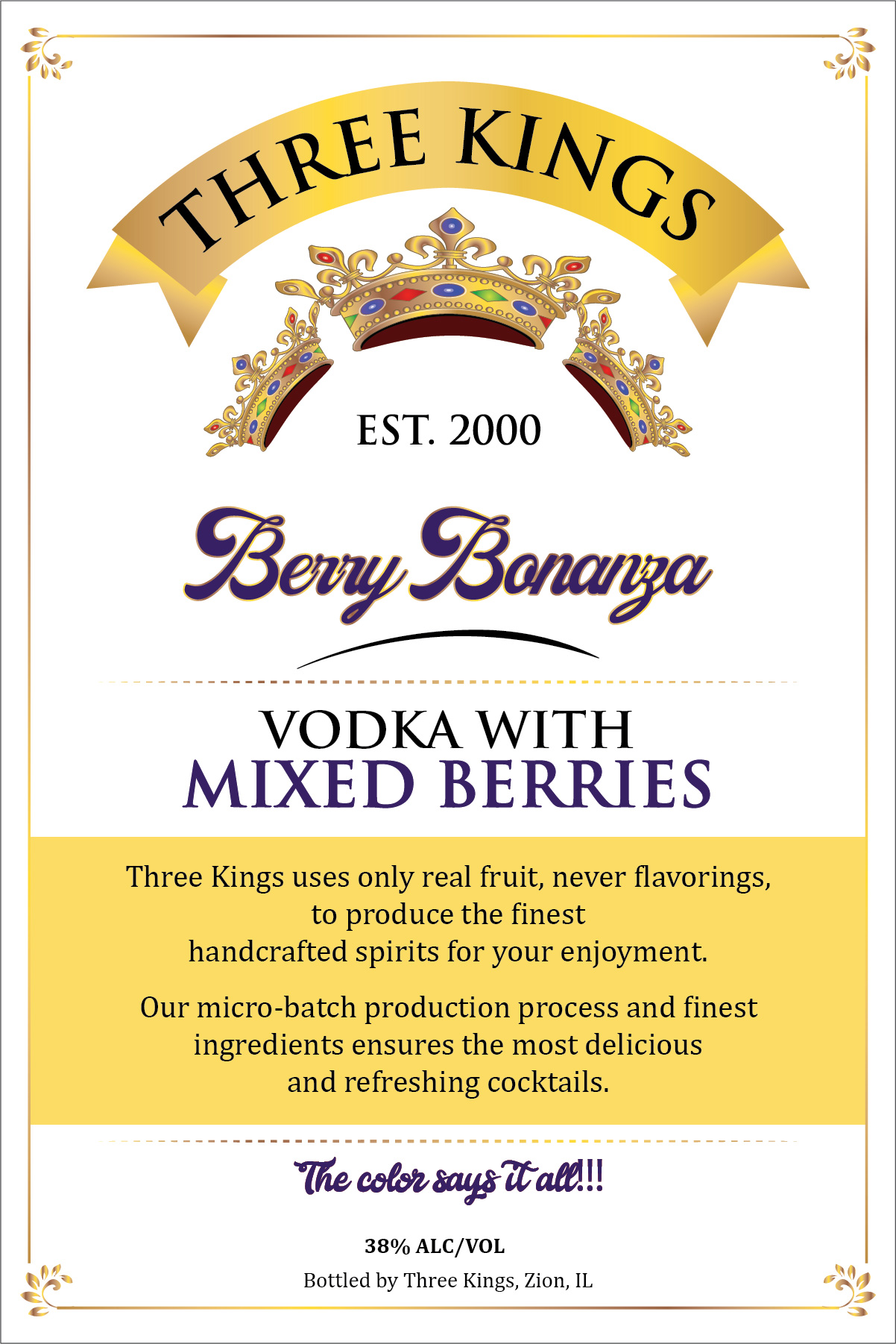 The label on Three Kings’ Hand Crafted Vodka tells you everything you need to know. It’s simple. We use only the finest imported wheat and pristine filtered lake water for the best vodka you’ll ever have. Shaken or stirred, Three Kings makes the best martini Bond ever had.